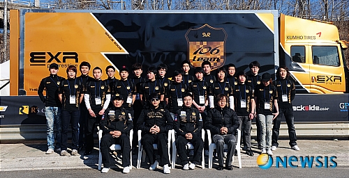 【서울=뉴시스】박동욱 인턴기자 = 3일 오후 서울 송파구 탄천주차장 내 카트체험장에서 열린 'EXR 팀 106 슈퍼루키 프로젝트 3차 카트레이싱 테스트'에서 류시원(앞줄 왼쪽 두번째) 감독을 비롯한 관계자들과 참가자들이 기념촬영을 하고 있다.