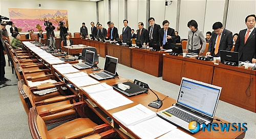 【서울=뉴시스】권주훈 기자 = 국회 문화체육관광방송통신위원회(위원장 전재희)는18일오후 전체회의를 열고 최시중 방송통신위원장 후보자에 대한 인사청문경과보고서를 민주당 의원들 불참속에 한나라당 의원들과 미래연대 김을동의원의 기립투표로 채택했다.