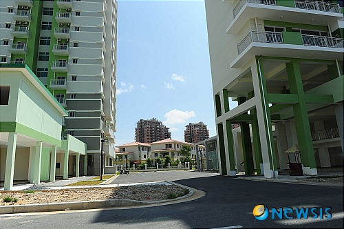【프놈펜(캄보디아)=뉴시스】임영주 특파원 = 국회 저축은행국정조사특위가 25일부터 본격화 되는 가운데 지난 13일 찾은 문제의 캄보디아 프놈펜 근교의 캄코시티 고층 아파트와 입주끝난 타운하우스, 멀리 골조만 올라간 건축물이 보인다.