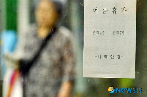 【서울=뉴시스】최동준 인턴기자 = 본격적인 휴가철이 시작된 가운데 31일 오전 서울 남대문시장 상가에 휴가를 알리는 문구가 내걸려 있다.