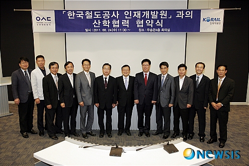【대전=뉴시스】유순상 기자 = 우송정보대학이 24일 대학 우송관 회의실에서 코레일 인재개발원과 철도관련 산업발전 및 전문인력 양성을 위한 산학협력 협약 체결식을 개최한 가운데 박승익(왼쪽 일곱번째) 총장 등 양기관 관계자들이 기념촬영을 하고 있다.(사진=우송정보대 제공)