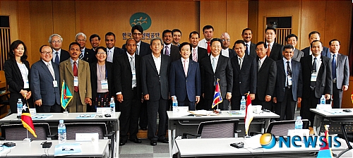 【서울=뉴시스】성형주 기자 = 송영중 한국산업인력공단 이사장(앞줄 왼쪽 일곱번째) 및 외국인근로자 15개 송출국 정부 고위 관계자들이 7일 서울 한국산업인력공단 국제회의장에서 불법체류 방지를 위한 결의를 다지고 기념촬영을 하고 있다. (사진=한국산업인력공단 제공)