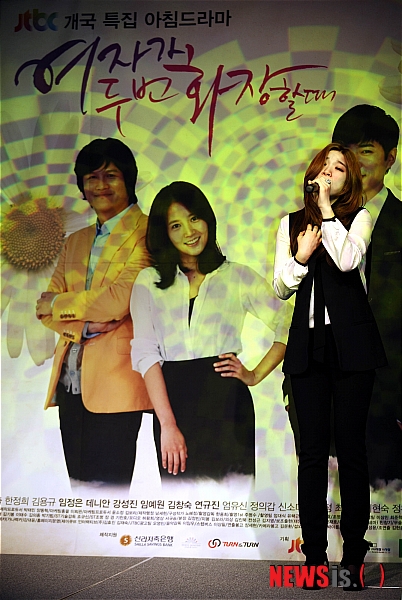 【서울=뉴시스】박문호 기자 = 22일 오후 서울 영등포구 여의도동 서울마리나 요트&클럽에서 열린 JTBC 개국기념 아침드라마 '여자가 두 번 화장할 때(연출 한정희)' 제작발표회에서 가수 바바라가 OST '얼마나'를 부르고 있다.