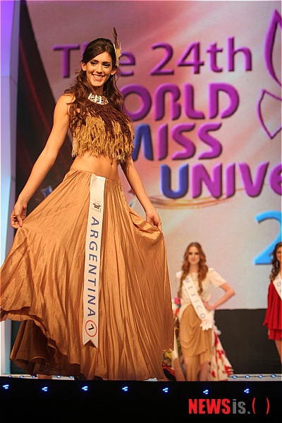 【정선=뉴시스】김경목 기자 = 2018평창동계올림픽유치성공기념 '제24회 월드미스유니버시티 세계대회 2011' 본 대회가 강원 정선군 하이원리조트 컨벤션홀에서 지난 15일 세계 62개국 64명의 대학생들이 참가해 열린 가운데 전통의상을 입은 아르헨티나의 다이아나 라루아 인캔들러(22·국립 부에노스 아이레스 대학교 법학과 전공)씨가 포즈를 취하고 있다. 월드미스유니버시티세계조직위원회(세계대학생평화봉사사절단)가 주최하고, 메세나뷰티가 주관, 외교통상부, 행정안전부, 문화체육관광부, 환경부, 대통령직속국가브랜드위원회, 대통령소속사회통합위원회, 대통령직속녹색성장위원회, 강원도, 하이원리조트, 한국관광공사, 인천국제공항공사, 강원일보, 메세나뉴스가 후원했다.