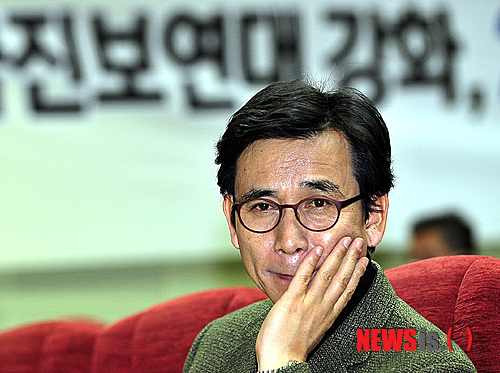 【서울=뉴시스】최동준 기자 = 유시민 통합진보당 공동대표가 12일 오후 서울 동대문구 경희대학교 청운관에서 열린 '2012 한국진보연대 학대대표자회의 및 승리결의대회'에 참석해 생각에 잠겨있다.