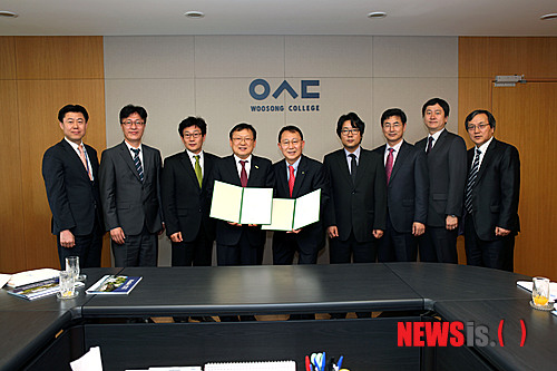 【대전=뉴시스】유순상 기자 = 우송정보대학이 10일 대학본부(우송관) 4층 회의실에서 사단법인 한국HR서비스산업협회, 커리어업과 취업을 연계한 HR서비스매니저 양성 산학협력 협약을 체결한 가운데 박승익(왼쪽에서 네번째) 총장 등 3개기관 관계자들이 기념촬영을 하고 있다.(사진=우송정보대 제공)