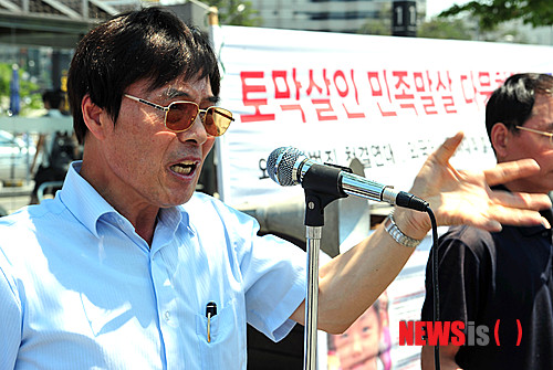 【서울=뉴시스】박문호 기자 = 17일 오후 서울 중구 봉래동 서울역 광장에서 외국인범죄 척결 연대가 집회를 열고 우웬춘 사건 등 외국인범죄에 대한 검찰의 철저한 재수사와 법무부의 외국인 관리 강화를 요구하고 있다.