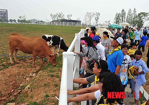 【안성=뉴시스】임영주 기자 = 농촌 다문화가정 자녀들이 22일 경기도 안성시 공도읍 안성팜랜드에서 축산 체험행사를 하고 있다. 농협중앙회 축산경제가 초청한 충북 옥천군과 경북 문경시 농촌 다문화가정 자녀 80여명이 국내 최대 놀이형 목장 안성팜랜드에서 가축먹이주기, 트랙터 마차타기, 승마체험 등 즐거운 축산 체험을 했다.