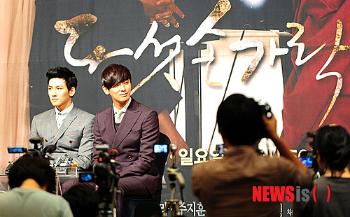 【서울=뉴시스】박주성 기자 = 16일 오후 서울 소공동 롯데호텔에서 열린 SBS 특별기획 '다섯손가락' 제작발표회에서 유지호 역의 주지훈과 유인하 역을 맡은 지창욱이 취재진의 질문을 받고 있다.