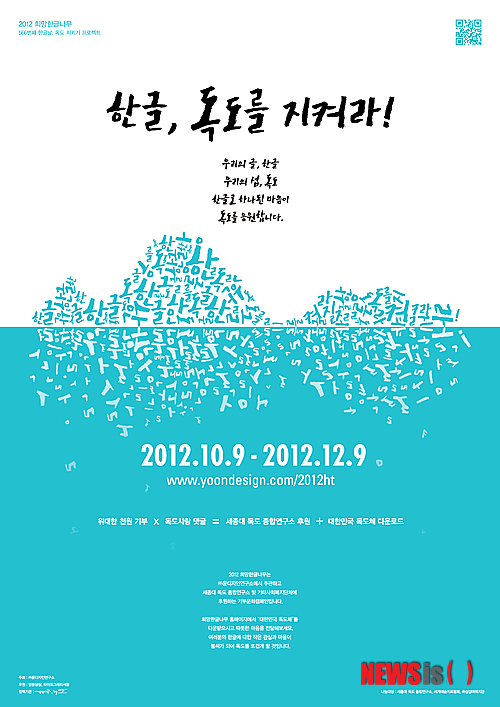 【서울=뉴시스】한글사랑 실천 기업 윤디자인연구소는 지난 9일 한글날을 기념해 독도를 주제로 '대한민국 독도체'를 개발, 오는 12월9일까지 '2012 희망한글나무' 프로젝트를 진행한다. (사진=윤디자인연구소 제공)
