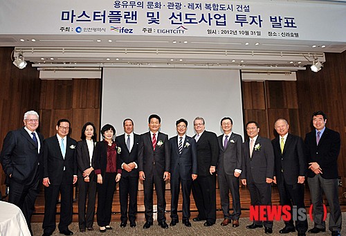 【서울=뉴시스】박주성 기자 =인천광역시는 31일 서울 신라호텔에서 용유무의 지역에 들어서는 '에잇시티(8City)' 건설 마스터플랜과 투자계획을 발표했다. 에잇시티는 라스베이거스, 두바이 등 세계 유명 도시들의 장점을 결합해 마리나, 게임·컨벤션, F1 자동차경주와 한류, 테마파크, 의료, 고급주거, 페스티벌, 미래도시 등 8개 주제로 조성된다.