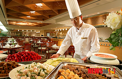 【정선=뉴시스】홍춘봉 기자 = 강원 정선군 하이원리조트는 크리스마스와 연말을 맞아 강원랜드컨벤션호텔 23층 카멜리아홀에서 스카이파크뷔페를 선보인다고 10일 밝혔다. 사진은 스카이파크 뷔페 모습.(사진=하이원리조트 제공)