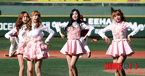 【서울=뉴시스】고범준 기자 = 14일 오후 서울 목동야구장에서 열린 2013 한국야쿠르트 세븐 프로야구 넥센 히어로즈와 삼성 라이온즈의 경기에서 걸그룹 비피팝이 축하공연을 하고 있다.