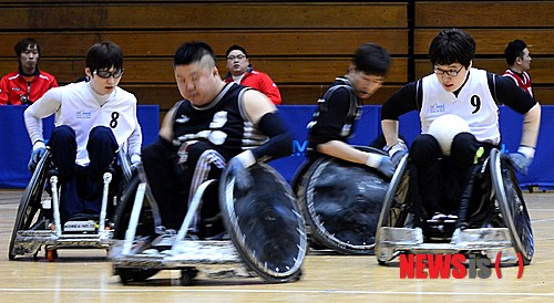 【서울=뉴시스】전신 기자 = 28일 오후 서울 관악구 서울대학교 체육관에서 열린 서울컵 제5회 전국휠체어럭비 선수권대회에서 쿼드 결승전 경북 아틀라스Q와 서울 헌터스의 경기에서 헌터스 이장규가 돌파를 시도하고 있다.