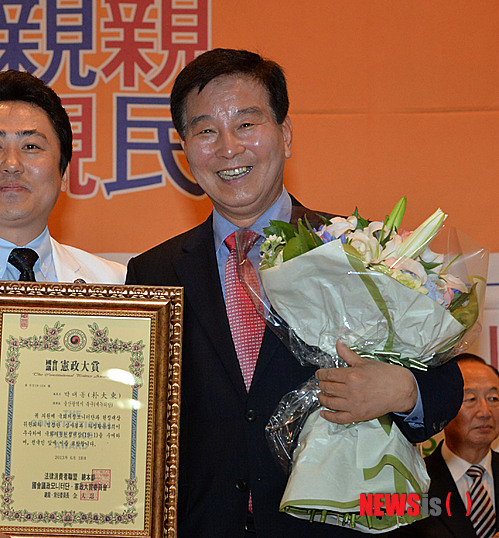 【서울=뉴시스】권주훈 기자 = 18일 오후 국회의원 의정활동 종합평가회 및 국회의원 헌정대상 시상식이 열린 서울 여의도 국회 헌정기념관 대강당에서 새누리당 박대동 의원(초선)이 헌정대상 상패를 받고 있다.