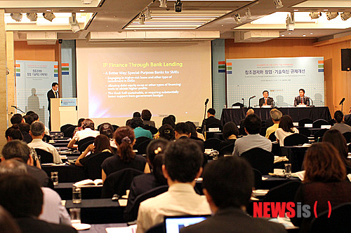 【서울=뉴시스】24일 서울 서초구 팔래스호텔에서 한국법제연구원 개원 23주년 기념 국제학술대회 '창조경제와 창업 기술혁신 규제개선'가 열리고 있다. 2013.07.24. (사진=한국법제연구원 제공)