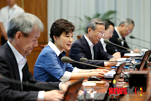 【서울=뉴시스】김영욱 기자 = 박근혜 대통령이 26일 오전 청와대에서 열린 수석비서관회의를 주재하며 새 정부 출범 6개월의 소회와 국정원 문제 등에 대해 발언하고 있다. 이 날 박 대통령은 "지난 선거때 국정원으로부터 어떤 도움도 받은 적 없다"고 말했다. 2013.08.26. (사진=청와대 제공)