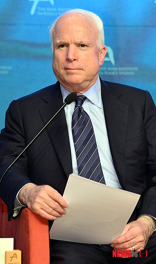 【서울=뉴시스】조종원 기자 = 26일 오후 서울 종로구 아산정책연구원에서 열린 美 상원의원 방한 기자회견에 존 매케인(공화·애리조나) 美 상원의원이 참석하고 있다. 2013.08.26.