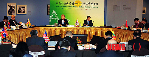 【광주=뉴시스】류형근 기자 = 6일 오전 광주 북구 광주시립미술관 특별회의실에서 제1회 한·동남아시아 문화장관 회의가 열린 가운데 각 국가의 장관들이 회의의사록을 채택한 뒤 기념사진을 찍고 있다. 2013.09.06. (사진=아시아문화중심도시추진단 제공)