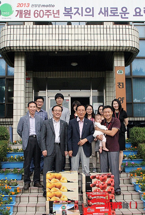 【대전=뉴시스】김양수 기자 = 기초과학연구원(IBS) 오세정(앞줄 왼쪽) 원장과 직원들은 11일 민족의 명절 추석을 맞아 대전 장대동에 위치한 사회복지시설 천양원을 방문해 쌀과 화장지, 온누리상품권 등 위문품을 전달하고 수용자들을 격려했다.2013.9.11 (사진=IBS 제공)