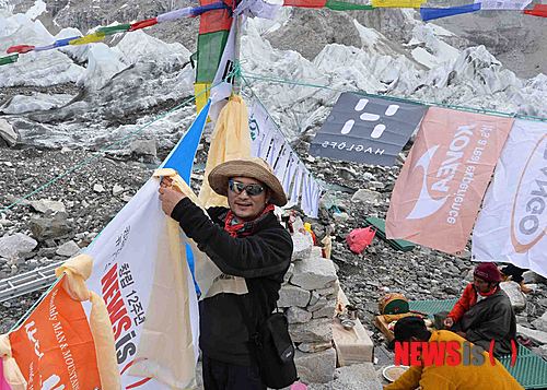 이번 로체원정대의 신루트(코리안 신루트) 초등정에는 국내 최대 민영 뉴스통신사 뉴시스와 한국대학산악연맹이 후원하고 (주)파이온텍과 용인대학교가 협찬한다. (사진=전재민 대원) 2013.09.24.