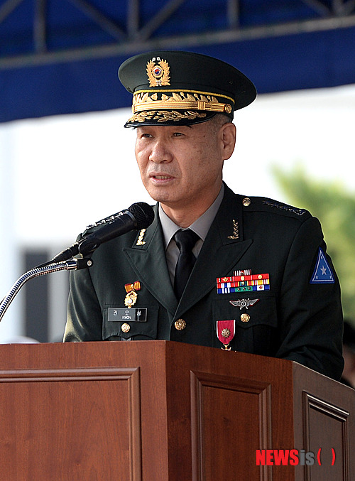 【서울=뉴시스】고범준 기자 = 27일 오후 서울 용산기지 나이트필드 연병장에서 열린 한미연합사 부사령관 겸 지상구성군 사령관 이-취임식에서 이임 부사령관 권오성 대장이 이임사를 하고 있다. 2013.09.27.