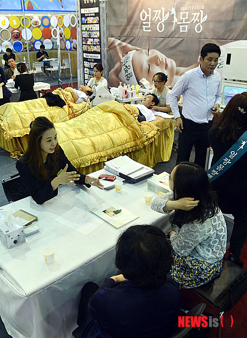 【서울=뉴시스】최동준 기자 = 3일 오후 서울 강남구 세텍에서 열린 제30회 프랜차이즈산업 박람회를 찾은 예비 창업자들과 관람객들이 창업 상담을 받고 있다. 박람회는 오는 5일까지 열린다. 2013.10.03.