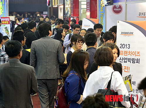 【서울=뉴시스】최동준 기자 = 3일 오후 서울 강남구 세텍에서 열린 제30회 프랜차이즈산업 박람회를 찾은 예비 창업자들과 관람객들이 창업 상담을 받고 있다. 박람회는 오는 5일까지 열린다. 2013.10.03.