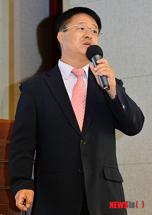 【화성=뉴시스】 박문호 기자 = 18일 오후 경기 화성시 동탄 인력개발원 대강당에서 '공감언론' 뉴시스와 한국도로공사가 공동으로 개최한 '제1회 전국 건설안전 경진대회‘에서 지난해 도로공사안전경진대회 최우수 현장으로 선정된 삼성물산 정형목 소장이 사례발표를 하고 있다.
