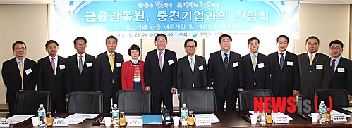 【서울=뉴시스】중견기업연합회는 23일 서울 마포구 한국중견기업연합회에서 최수현 금융감독원 원장과 함께 '금융애로 해소를 위한 중견기업인과의 간담회'를 개최했다. 2013.10.23. (사진=중견기업연합회 제공)