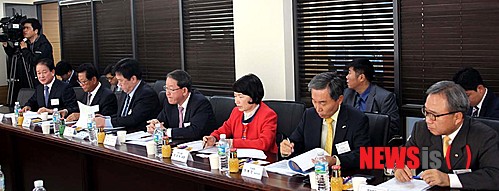 【서울=뉴시스】중견기업연합회는 23일 서울 마포구 한국중견기업연합회에서 최수현 금융감독원 원장과 함께 '금융애로 해소를 위한 중견기업인과의 간담회'를 개최했다. 2013.10.23. (사진=중견기업연합회 제공)