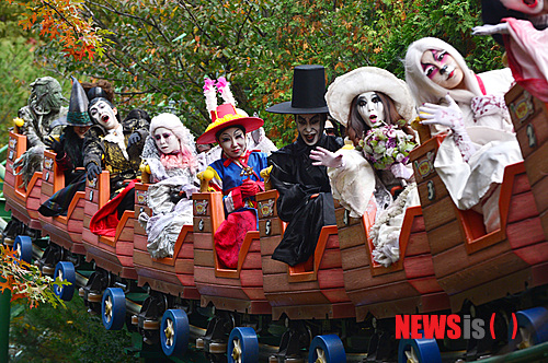 【용인=뉴시스】강종민 기자 = 할로윈 데이를 일주일 앞둔 24일, '할로윈 & 호러나이트' 축제가 한창인 경기 용인 에버랜드에서 처녀귀신, 구미호, 드라큘라 등 귀신들이 레이싱 코스터 등 에버랜드의 스릴 어트랙션에 탑승, 특별한 담력 훈련(?)을 하고 있다. 2013.10.24. (사진=에버랜드 제공)