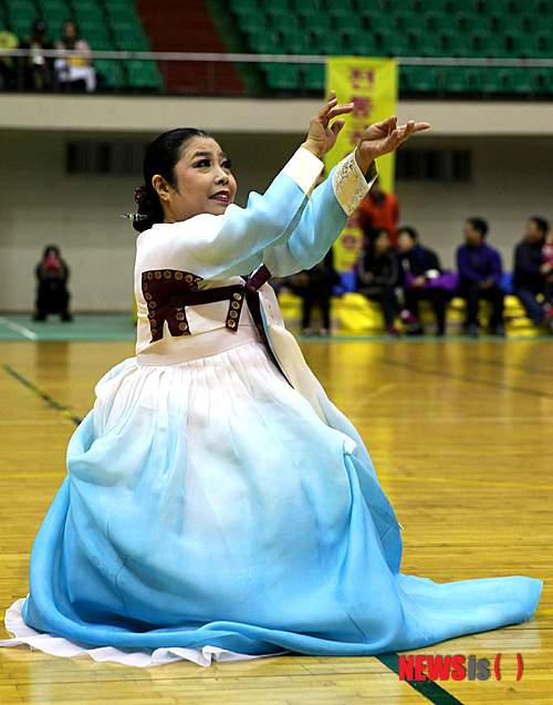 【서울=뉴시스】원광디지털대학교(총장 성시종, www.wdu.ac.kr)는 지난 9일, 전북 익산 본교에서 5백여명의 학생 및 교직원이 참석한 가운데 '2013 한마음 체육대회'를 개최했다. 사진은 한마음 체육대회 전통공연예술학과 김경란 학생의 무용공연. 2013.11.10. (사진=원광디지털대학교 제공)