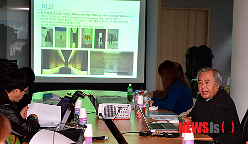 【광주=뉴시스】류형근 기자 = 19일 오전 광주 동구 아시아문화중심도시추진단 회의실에서 황지우 국립아시아문화전당 민주인권평화기념관 책임교수가 전시콘텐츠에 대해 설명하고 있다. 2013.11.19.