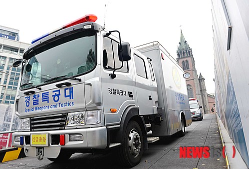 명동성당 나서는 경찰특공대 차량