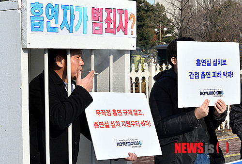 아이러브스모킹은 "길거리 흡연규제 및 단속에 앞서 흡연자들의 흡연권 또한 침해받지 않도록 '금연구역 내 흡연구역(흡연실)' 설치가 추진되어야 한다"며, "간접흡연의 피해를 줄이는 지름길"이라 주장했다. 2013.12.10.