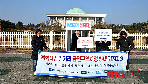 아이러브스모킹은 "길거리 흡연규제 및 단속에 앞서 흡연자들의 흡연권 또한 침해받지 않도록 '금연구역 내 흡연구역(흡연실)' 설치가 추진되어야 한다"며, "간접흡연의 피해를 줄이는 지름길"이라 주장했다. 2013.12.10.