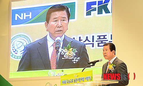 【서울=뉴시스】이종철 기자 = 농협중앙회와 (사)농촌사랑운동본부(상임공동대표. 농협중앙회 최원병 회장, 전국경제인연합회 허창수 회장)가 수상기업 임,직원, 수상마을 대표,주민등 500여명이 참석한 가운데 16일 오후 서울 중구 농협중앙회 대강당에서 개최한 '제8회 도농교류 농촌사랑대상 시상식'에서 최원병 농협중앙회장이 인사말을 하고 있다. 2014. 01 .16