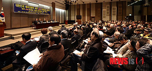 【서울=뉴시스】홍찬선 기자 = 제주4.3 진상규명국민모임이 20일 오후 서울 중구 프레스센터에서 '대한민국 애국진영이 제주 4.3 추념일을 말한다' 세미나를 하고 있다. 2014.01.20.