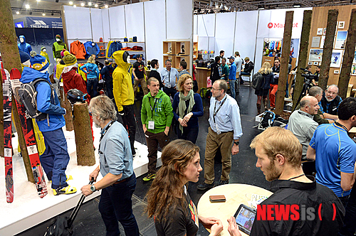 【서울=뉴시스】사진공동취재단 = 28일 독일 뮌헨에서 열리고 있는 세계 최대 스포츠의류-용품 박람회( ISPO 2014)장에서 참가자들이 미국 아웃도어 브랜드인 마모트 매장을 둘러보고 있다. 2014.01.28.