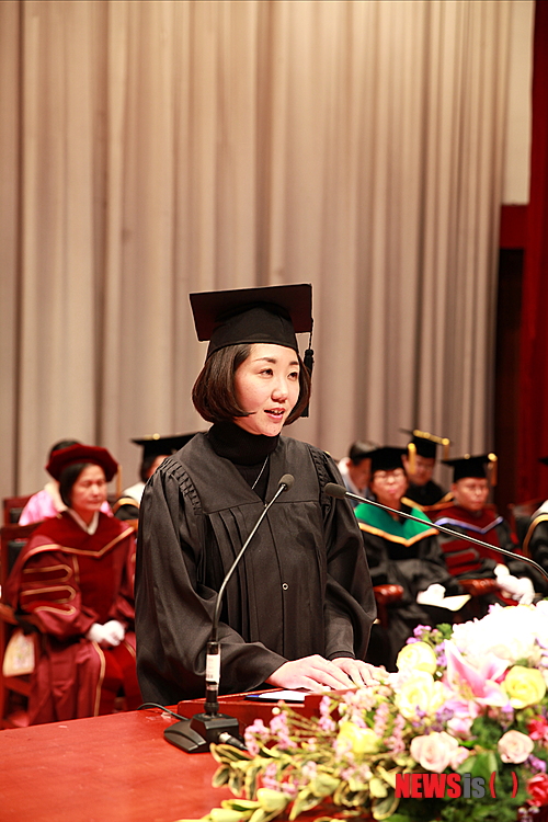 【서울=뉴시스】원광디지털대학교(총장 성시종, www.wdu.ac.kr)는 지난 15일(토) 전라북도 익산의 원광대학교 학생회관 대강당에서 2013학년도 전기 학위수여식을 개최했다. 사진은 소감 이야기하는 졸업스토리공모전 최우수상 수상한 한국어문화학과 양지애 씨.