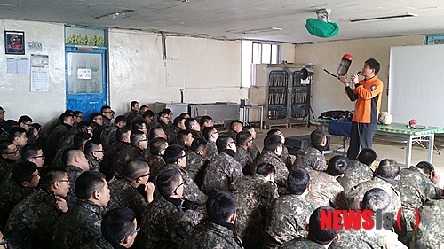 【춘천=뉴시스】박혜미 기자 = 19일 오전 11시 강원 춘천소방서(서장 우원기)에서는 화천군 마현리 7사단 군장병 400여명을 대상으로 소·소·심 익히기 프로그램이 운영됐다. 2014.02.19. (사진=-춘천소방서 제공)