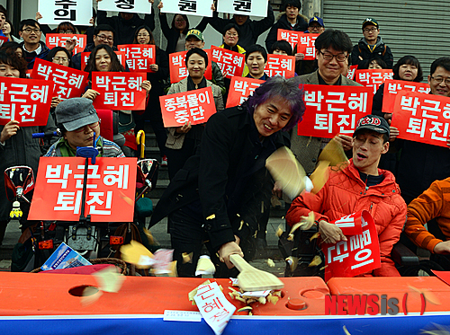 박근혜 정부 1년 '박깨기 퍼포먼스'
