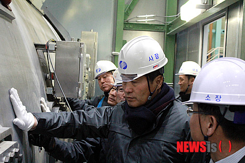 【서울=뉴시스】김진아 기자 = 한국남부발전 이상호 사장이 안전문화 정착과 해빙기 안전사고 예방을 위해 지난 7일 경북 안동 안동천연가스건설소를 방문해 전격 출력상태에서 발전기의 진동 상태를 점검하고 있다. 2014.03.11. (사진=한국남부발전 제공)