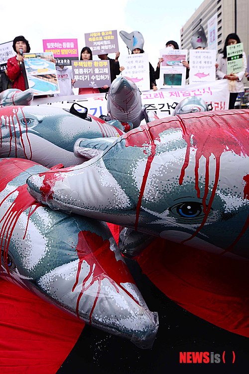 【서울=뉴시스】전신 기자 = 20일 오후 서울 광화문광장에서 동물단체 회원들이 기자회견을 갖고 경남 거제에 국내에서 규모가 가장 큰 돌고래 체험장을 개장할 계획의 거제씨월드 돌고래 무더기 수입을 규탄하고 있다. 2014.3.20.