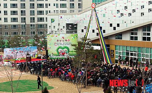 【서울=뉴시스】김진아 기자 = 21일 경북 봉화군 봉화읍 내성천2길에서 박노욱 봉화군수와 주민 등 600여명이 참석한 가운데 '봉화군노인복지관 준공 및 개관식'이 열리고 있다. 2014.03.21. (사진=봉화군노인복지관 제공)