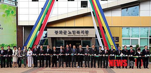 【서울=뉴시스】김진아 기자 = 21일 경북 봉화군 봉화읍 내성천2길에서 박노욱 봉화군수와 주민 등 600여명이 참석한 가운데 '봉화군노인복지관 준공 및 개관식'이 열리고 있다. 2014.03.21. (사진=봉화군노인복지관 제공)