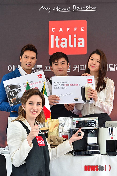 【서울=뉴시스】고승민 기자 = 이탈리아 프리미엄 커피브랜드 '까페 이탈리아'가 국내 시장 진출을 기념해 다양한 커피머신을 출시했다. 이날 오전 서울 종로구 동아미디어센터 앞에서 방송인 크리스티나와 모델들이 포즈를 취하고 있다. 2014.04.29.
