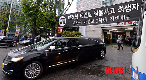 【광주=뉴시스】서재훈 기자 = 8일 오전 광주 운암동 한국병원 장례식장에서 '세월호' 침몰사고 희생자인 단원고 2년 故 김대현 군의 발인이 진행되고 있다.