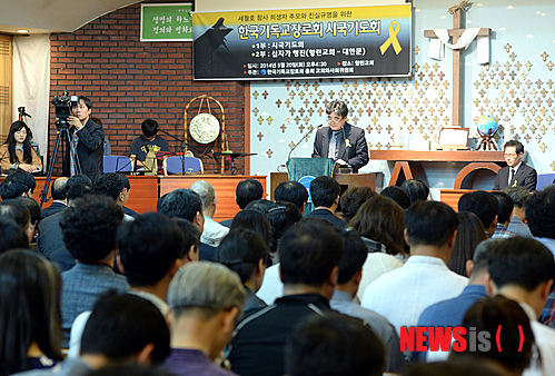【서울=뉴시스】박상훈 기자 = 한국기독교장로회총회가 20일 오후 서울 을지로 향린교회에서 '세월호 참사 희생자 추모와 진실 규명을 위한 시국기도회'를 열고 기도하고 있다. 2014.05.20.